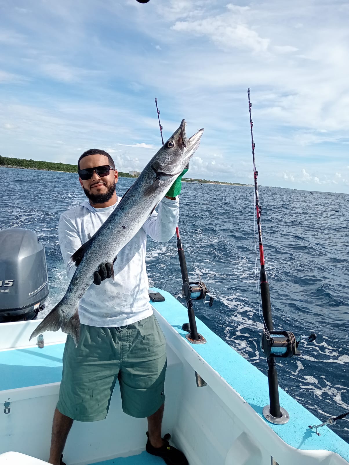 On October 5th, we headed out for a 4-hour offshore trolling trip starting at 8:00 AM, and it turned out to be a fantastic morning on the water. We were joined by a wonderful couple eager to experience deep sea fishing in the Riviera Maya, and the conditions couldn’t have been better — calm seas, light breeze, and clear skies throughout the day.