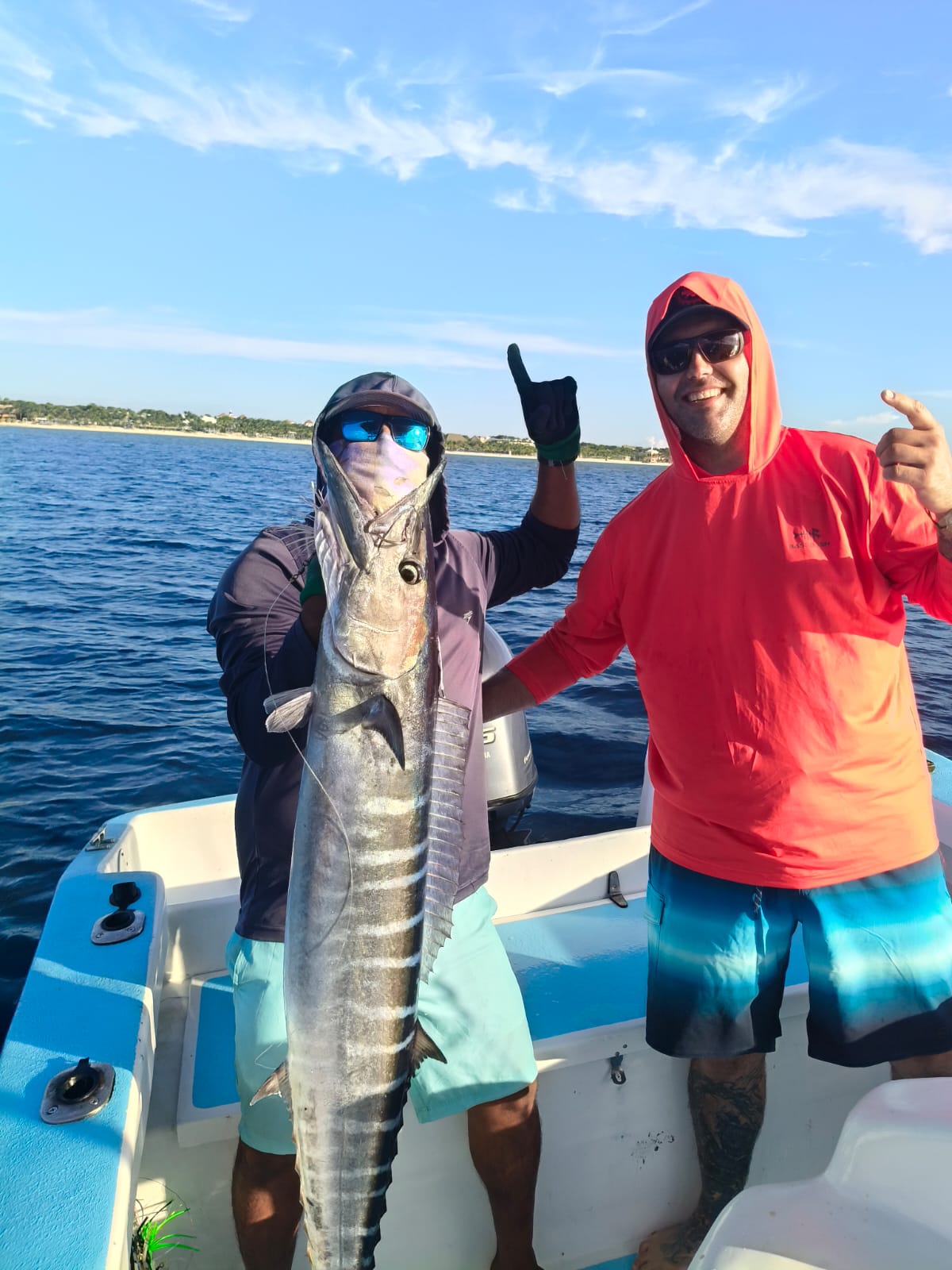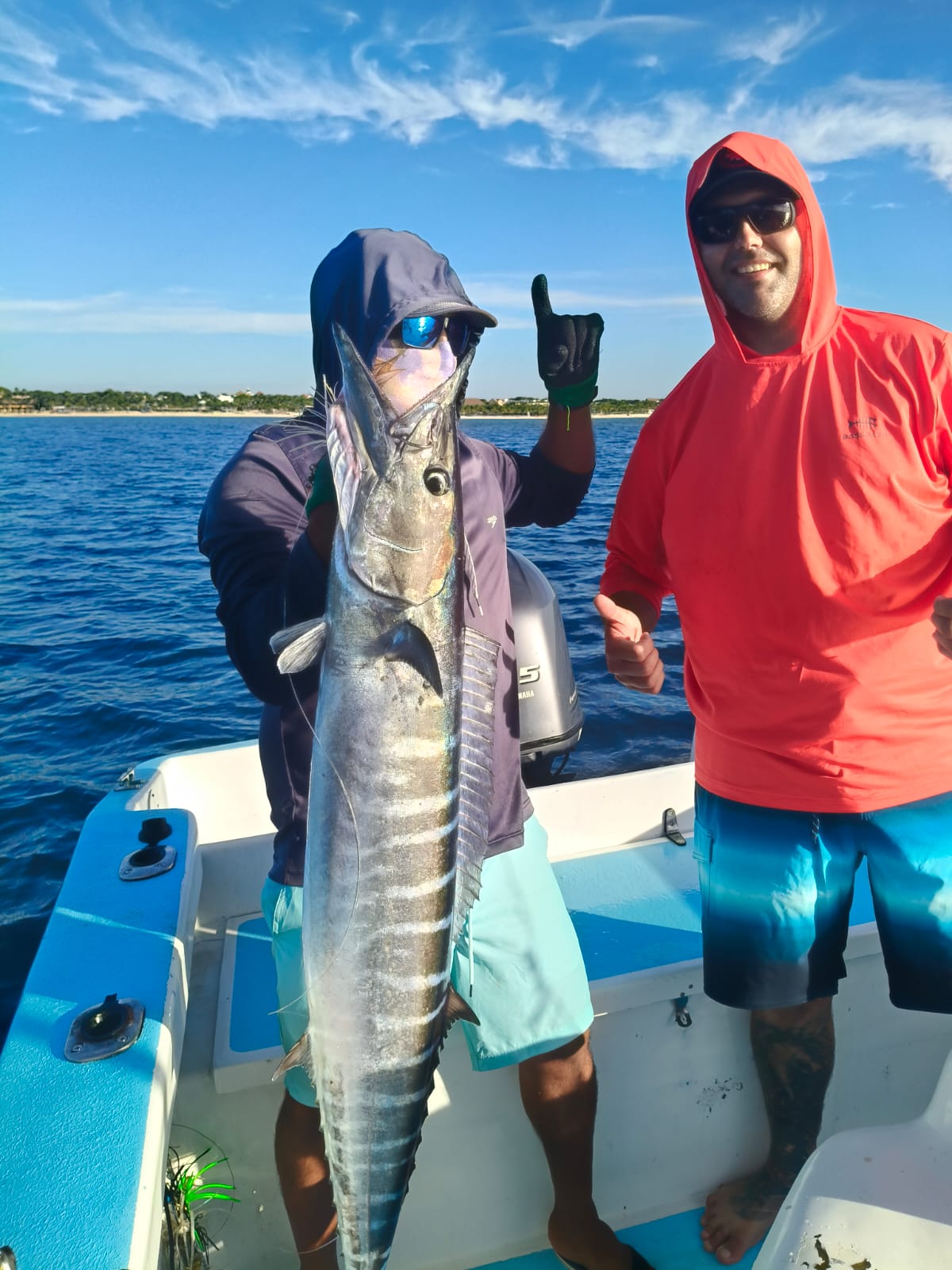 Throughout the morning, the team worked with a variety of techniques including trolling, live bait, and artificial bait. The action was steady, and the couple managed to reel in some exciting catches. Highlights of the day included a strong barracuda and a nice-sized wahoo, both of which brought plenty of excitement on board.