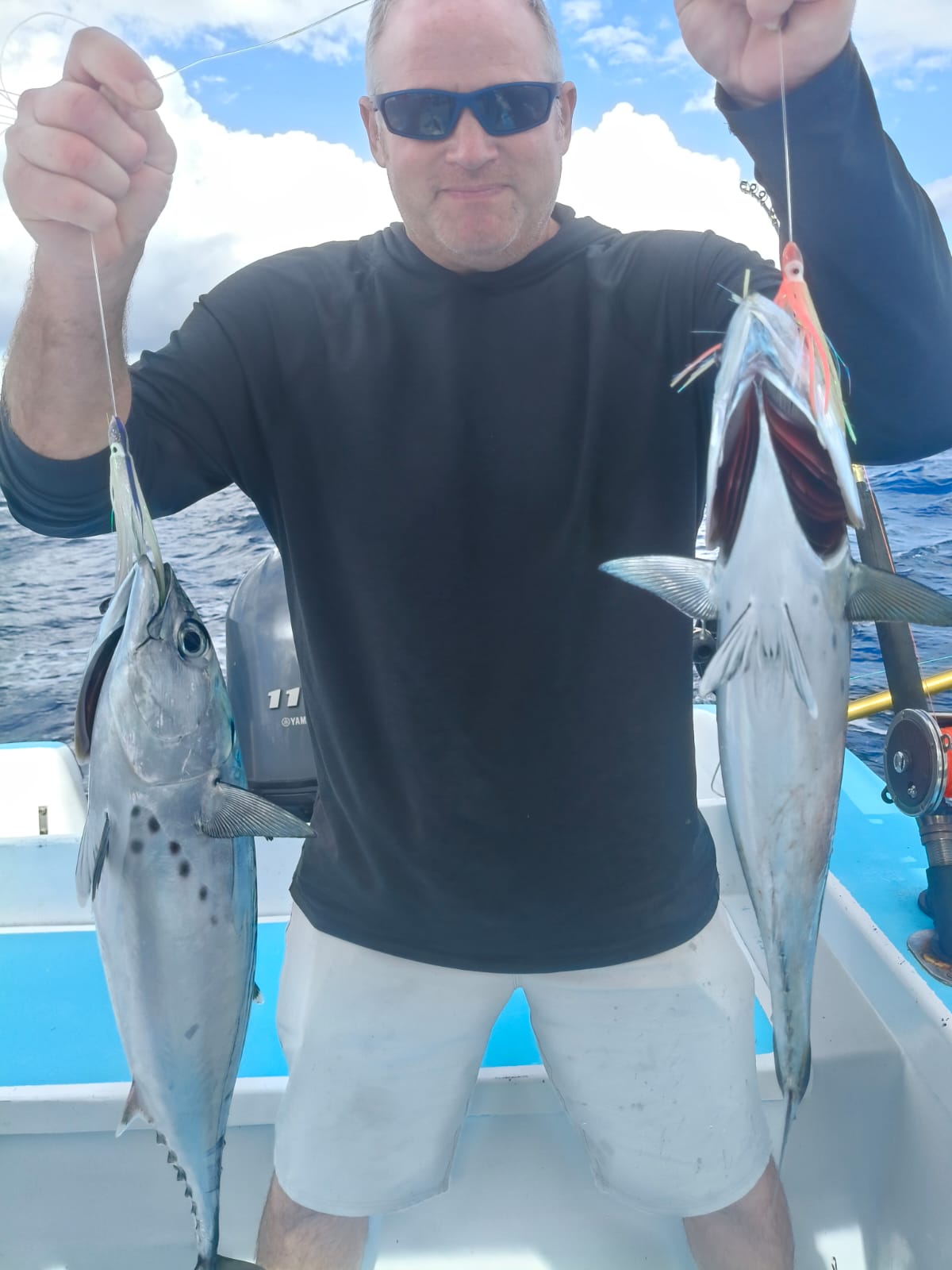 On December 16th, we headed out at 8:00 AM for a 4 hour fishing trip with a group of guy friends on board. We spent the morning trolling, covering water and keeping the spread set up to look for steady action. We managed to hook up with a barracuda, which gave everyone a fun fight and some great excitement on deck. The ocean was a little choppy at times, but it was no problem and the conditions stayed comfortable enough to keep fishing without any issues. With beers and sodas on board and plenty of laughs, the crew had a blast together and made the most of a great morning on the water.