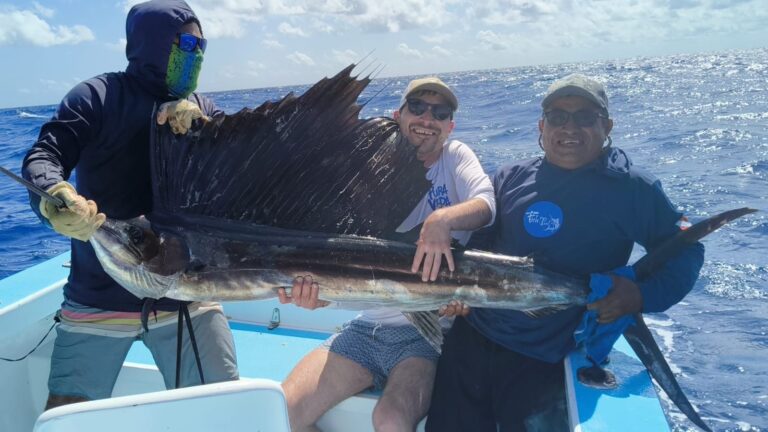 We had the pleasure of welcoming a wonderful family from Spain—father and two sons—who joined us for an exciting fishing adventure in the Mexican Caribbean.