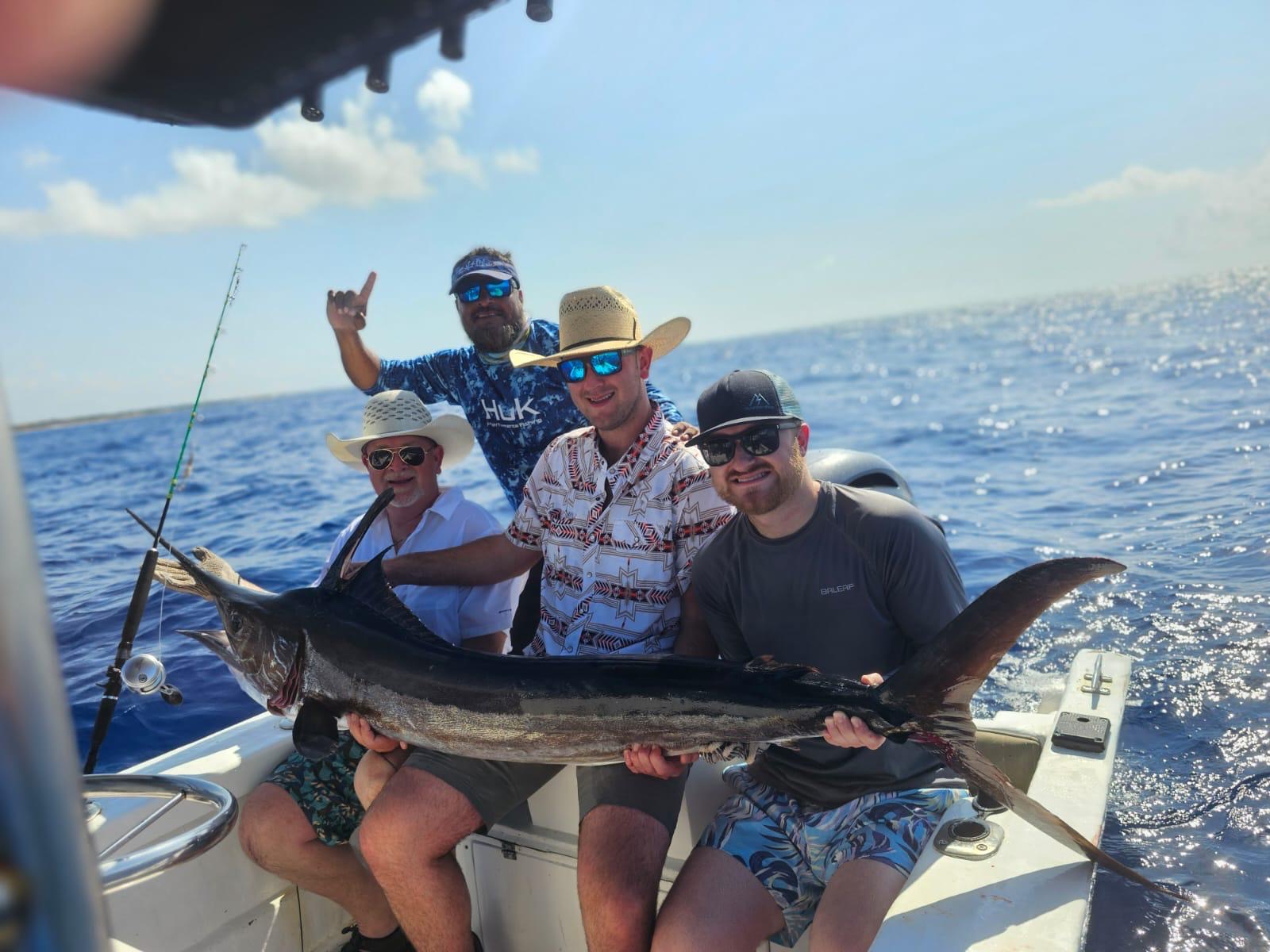 What an amazing day out on the water! This morning, we headed to the fishing zone just a few kilometers from the central beach in Playa del Carmen. Despite some waves, the Caribbean looked absolutely stunning. And the catch of the day? We landed a beautiful 80-pound white marlin! A huge thank you to our friend for choosing us and trusting us to provide this incredible fishing experience. Thank you for being part of this thrilling day on the water!